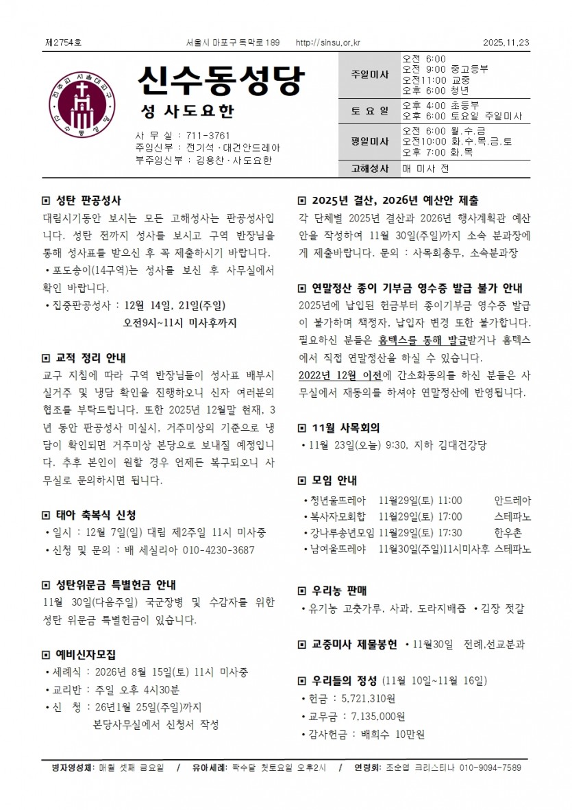 2025년11월23일 그리스도왕 대축일 페이지 정보 작성자 최고관리자 댓글 0건 조회 222회 작성일 25-11-22 15:26 목록 본문 2025년11월23일 온 누리의 임금이신 우리 주 예수 그리스도왕 대축일, 성서주간 이전글2025년11월30일 대림제1주일 25.11.29