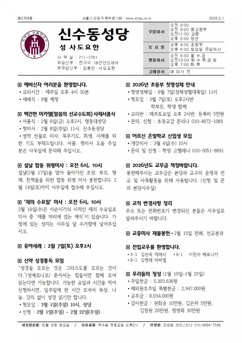 2026년2월1일 연중제4주일 페이지 정보 작성자 최고관리자 댓글 0건 조회 330회 작성일 26-01-29 09:40 목록 본문 . 이전글2026년2월8일 연중제5주일 26.02.08 다음글2026년1월25일 연중제3주일, 하느님의 말씀주일, 해외원조주일 26.01.22