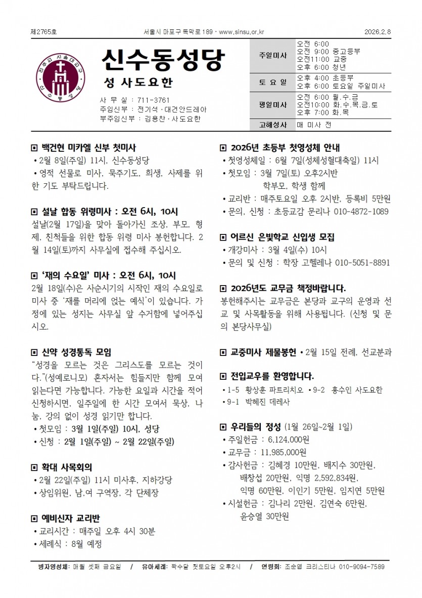 2026년2월8일 연중제5주일 페이지 정보 작성자 최고관리자 댓글 0건 조회 242회 작성일 26-02-08 17:27 목록 본문 . 이전글2026년2월15일 연중제6주일 26.02.10 다음글2026년2월1일 연중제4주일 26.01.29