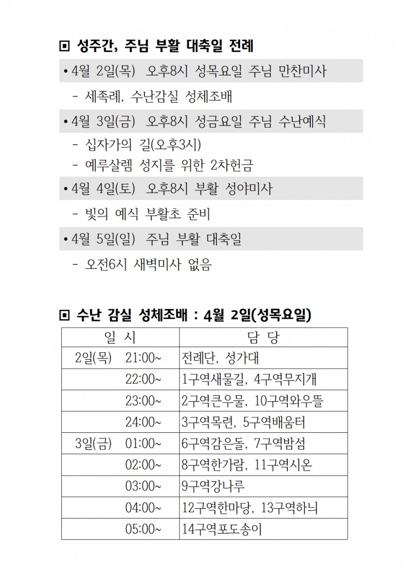 2026년 성주간, 주님부활대축일 전례안내 페이지 정보 작성자 최고관리자 댓글 0건 조회 6회 작성일 26-03-29 09:42 목록 본문 . 다음글[생명분과]2026년3월호_생명을 위하여 26.03.14